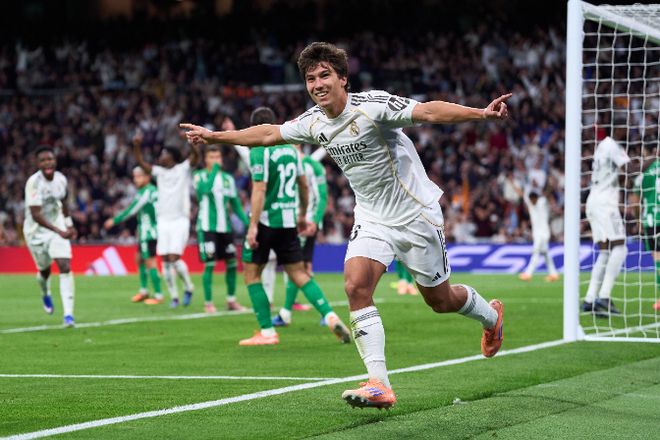 在2025-26赛季西甲第18轮,皇家马德里主场对阵皇家贝蒂斯。顶替姆巴佩首发出场的贡萨洛-加西亚在打入西甲处子球之后,凌空扫射破门,皇马生涯首次完成双响炮。